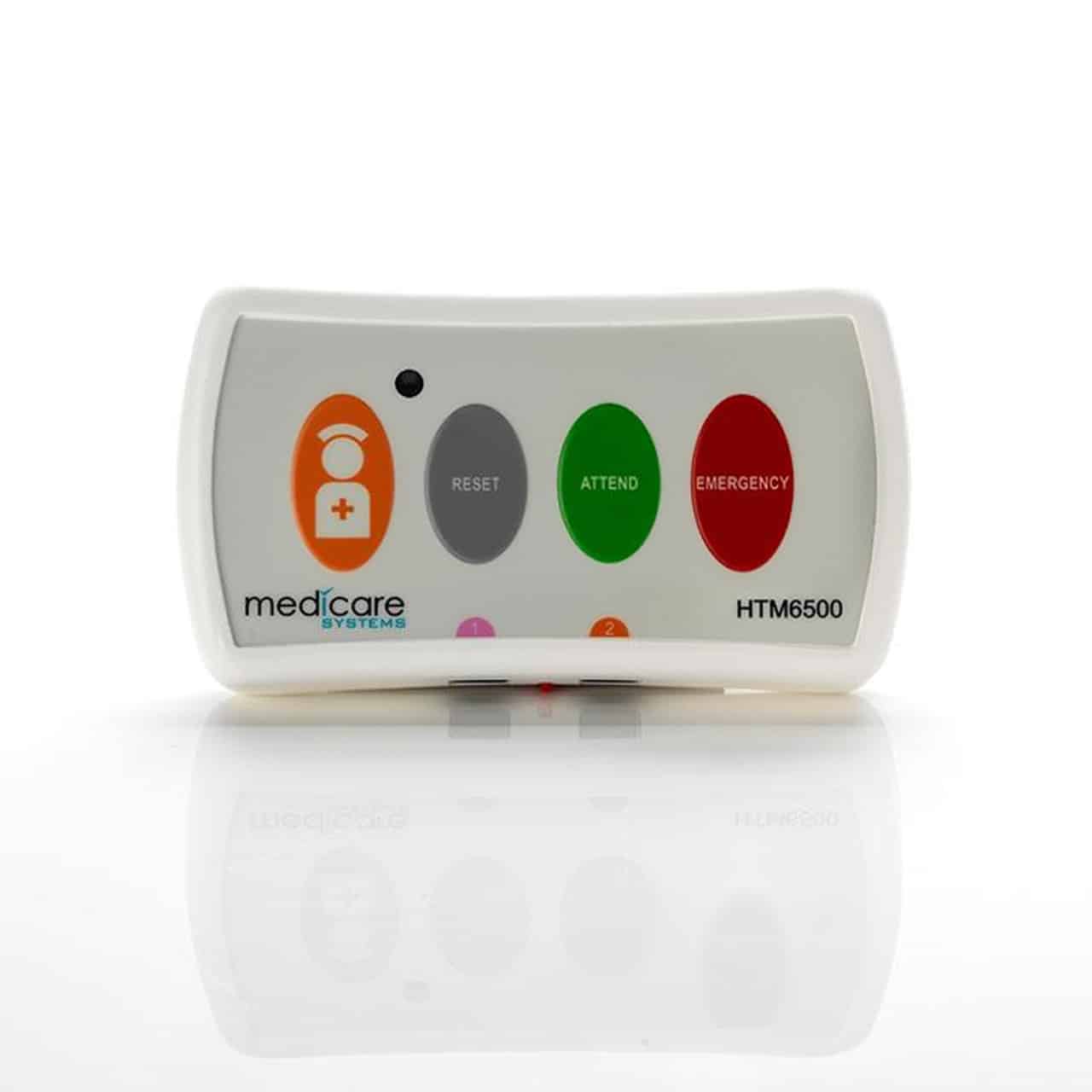 The HTM6500IR model is supplied with a pull cord and two sockets as standard for connecting a pear push lead and a wide variety of assistive technologies, such as floor mats, PIR triggers and many more. Also has a built-in IR receiver, for use with the Medicare range of pendants.